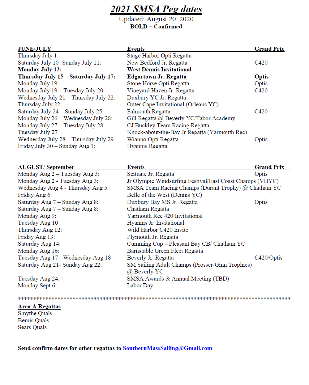Sail Regatta Schedule